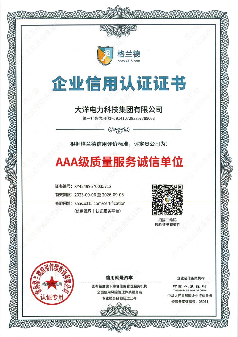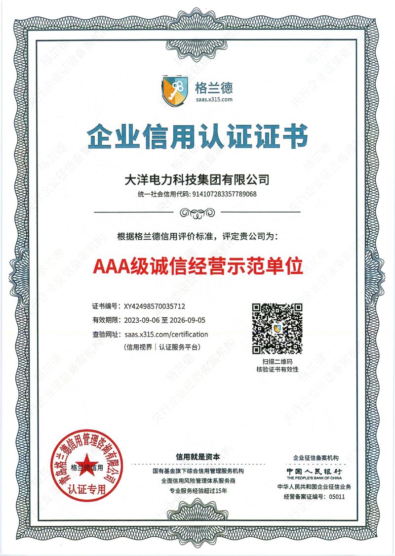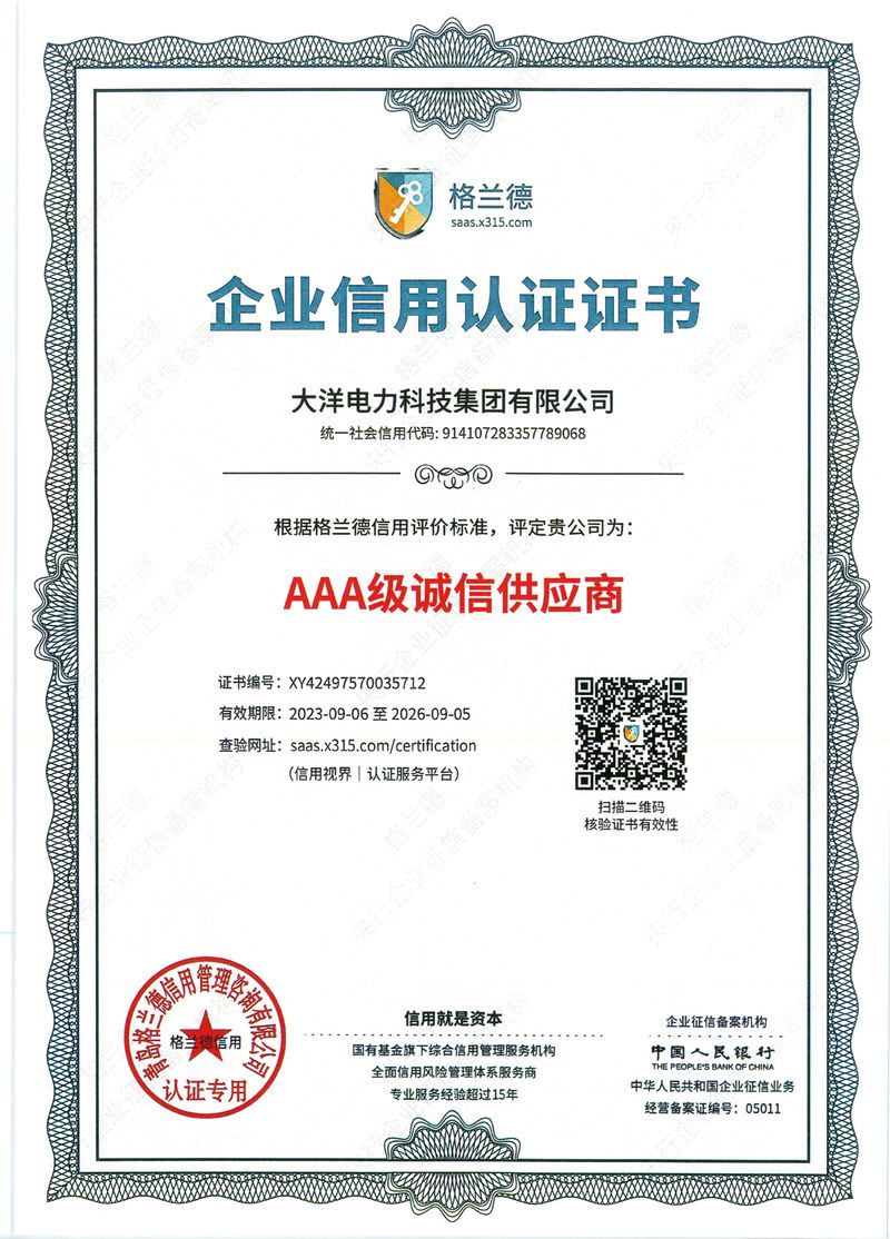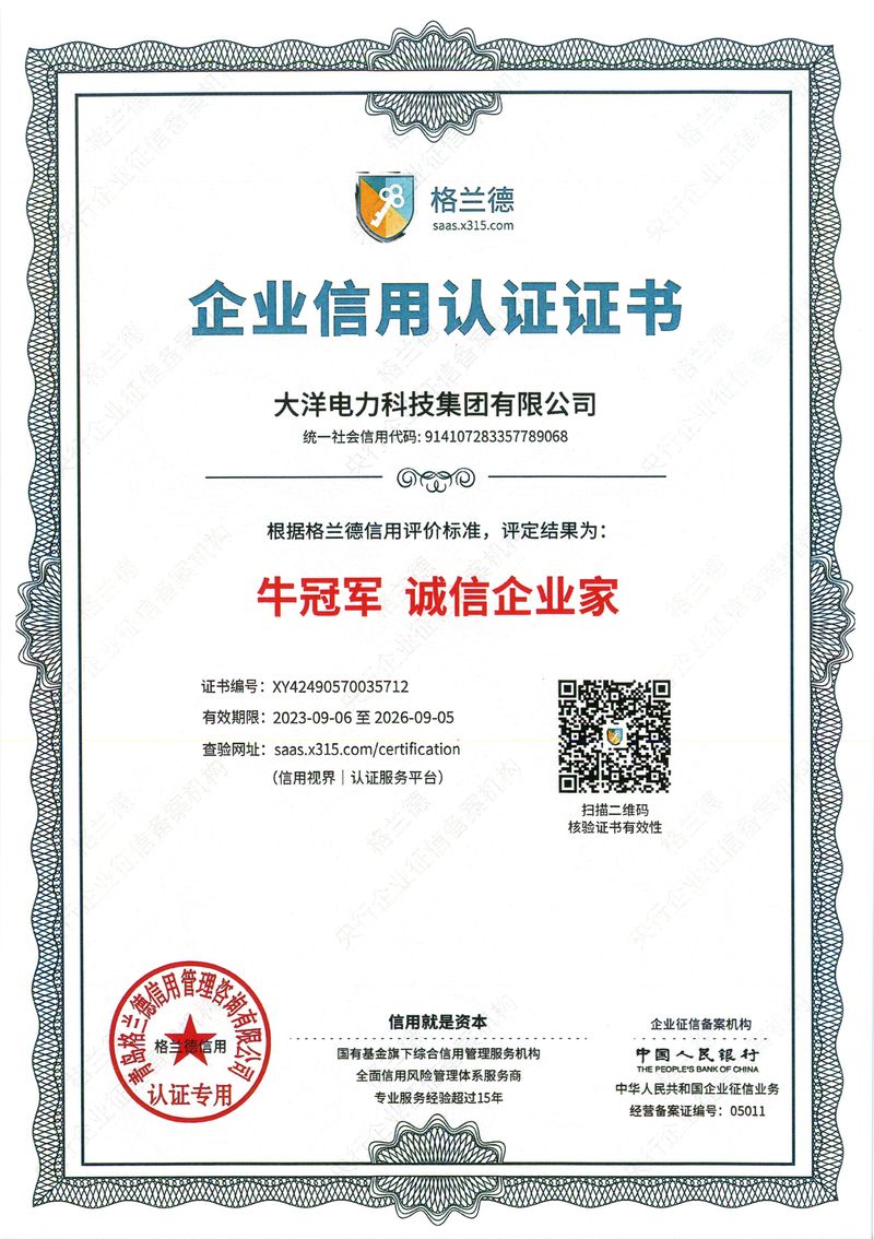 您好,歡迎進入大洋電力科技集團有限公司官方網站!
